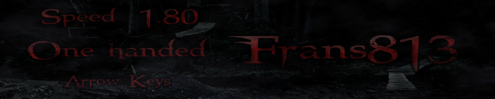 Random Thoughts Posted on: October 15, 2013, at 10:49:20am [0 comments] Finally Flash Flash Revolution has been added to the twitch Game data so I'll be streaming FFR more often ^-^ www.twitch.tv/Frans813 Posted on: June 21, 2012, at 02:34:39pm [0 comments] I just finished making my game account on Facebook if you would like to stay in touch with me you could add me on this account. ^.^ http://www.facebook.com/frans.gaming Posted on: April 9, 2012, at 07:29:40pm [0 comments] With thanks to Bynary Fission a couple years ago :D Thought I'd add this here I am uploading alot of videos on www.youtube.com/Frans813FFR That one is also linked to my Twitter https://twitter.com/Frans813 and my facebook https://www.facebook.com/frans.gaming so use one of these links to follow my video's. I upload frequent video's of gameplays and sometimes a random IRL FFR video. Posted on: March 12, 2012, at 05:26:58pm [0 comments] AAA: 56 Level| Song 2 Etude in E Major 1 Free Space (FFR Edit) 1 Power 2 Counting Snow 2 Town Theme 1 (WIP Edition) 9 Fight Through The Forest 1 Sea Breeze 2 Baby Don't You Want Me 2 Dance 2 This 3 Tears of Remorse ---------------------------------10 3 When Petals Fall 3 TWILT 2 Halcyon [SGX] 1 Trip to the Moon (Club Remix) 2 Prelude No.7 6 Norfolk Gals 2 Cid's Theme Piano Concerto 2 Hana Yuduki 6 Shu Kurimu no Uta 4 Lilium (Strings & Piano Remix) ---------------------------------20 2 Digital Atmosphere 5 Pita 3 Computer Dreams 8 Floating Bridge 3 Tower 1 SuperMario 8bit Eighties Remix 2 Fall Into Night 10 Tricky Concert 6 Space Entopy 2 Release ---------------------------------30 2 Love You Anymore 4 For Who I Am 4 Botu1 4 Eternal Struggle 4 This Beat is For Tha Streets! 3 Falling Into You 2 Activity Unbroken 4 Above 6 bitmapstar 4 Temple ---------------------------------40 10 Zelda Stormy 8 Dr Wily Theme V2 10 Secret Zombie Room 3 Driveway [Light] 5 Switchback [Light] 4 Kirilian changes 5 Blackout [The Flashbulb] 6 Kung Fu Koalas 9 Skate or Die 2 5 Soul Shift [FFR Edit] ---------------------------------50 3 Reaper 3 Sun and Star 7 After Altair 6 Kind im Eindsclummern 3 FF7 - Theme Aeris 5 You Are Not Confined BF: 6 15 Tightrope City 4 NES-Style Eye of the Tiger 9 Tom Savini vs Gren Nicotero [Heavy] 17 Footsteps 7 Mocha Ocean 4 Eight Melodies SDG: 23 ( LVLS not up to date aftwer the - line they are updated) 4 Louder Than Thunder 2 Imaginary Sky 133-7-0-0-3 4 Morning Glory 248-7-1-0-0 5 Footsteps 4 Skate or Die 2 158-7-1-0-1 4 Arrrrrr 258-9-0-0-1 5 A Christmas Carol 4 Tom Savini vs Greg Nicotero [Heavy]355-7-1-0-0 3 NES-Style Eye of the Tiger 5 Killer Dance floor 512-9-0-0-4 4 Metal Gear Solid Piano Remix 3 Switchback [Light] 399-8-1-0-0 5 Breaking the Common 560-7-0-0-1 2 Excite Bike 3 You're Not Alone Remix --------------------------------- 22 American in Amsterdan[Heavy] 7 Field Of Snow [Light] 6 Kind im Einschlummern 2 Twisted Hide and Seek _______________________________________________ Random Goals: [X] FC 4 Full Pages in Legacy [X] FC 1 Full Page in Dance [X] FC 1 Full Page in Arcade [X] FC 2 Full Pages in Rock [X] FC 1 Full Page in Classic [X] AAA 1 Full Page in Classic [X] FC 2 Full Pages in Misc [ ] FC 1 Full Page in Secret [ ] FC 1 Full Page in Hip-Hop ________________________________________________ Non-Public Scores: AAA: 1 Eien Meikyu 5 Calm (Short 'n' Slow Mix) 5 Tell 8 Ride of the Black Rider 4 Crying Soul 5 Blackout [The Flashbulb] 3 Strategem Average Rank: 7,514.3082 AAA's: 53 | FC's: 246 You have FC'd 19.49% of all public songs. You have AAA'd 4.2% of all public songs. Comment wall