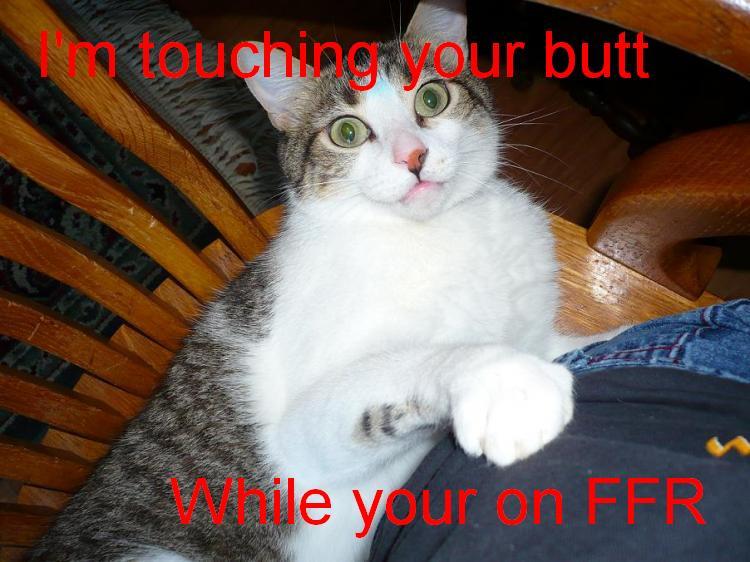 My cat, Gizmo...Looks just like that...And he sits on my shoulder when I play FFR. I'll have my mom take a picture of it sometime and I'll post it. :P