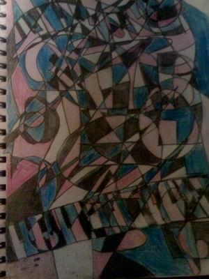 Beleeve it or not this has the words love, freedom, anger, tolerance and tear. it also has 2 sets of piano keys amd 2 treble cleffs. I was in a very emotive mood when i did this so therefore it reflected what i felt and what i love and need 2 learn in it. it is more than just colours and shapes.