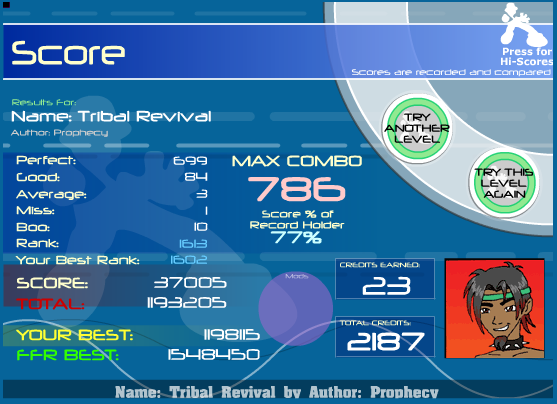 Lol 786. You wouldn't believe it but I got 786 about 4 times in a row. Must get the token haha "Tribal Style -- Get a Full Combo on Tribal Revival to unlock Tribal Style-"