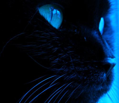 i love all your cat pics cuz it reminds me of my black cat that just died. and pluse this pic is like black and blue.coooooool.