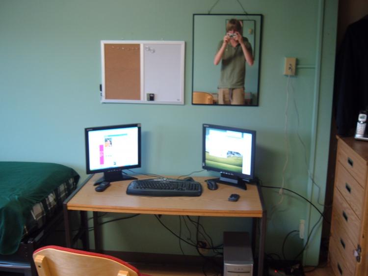 haha, nice PC setup, i like to use them in sync though. I cant help notice that mirror...