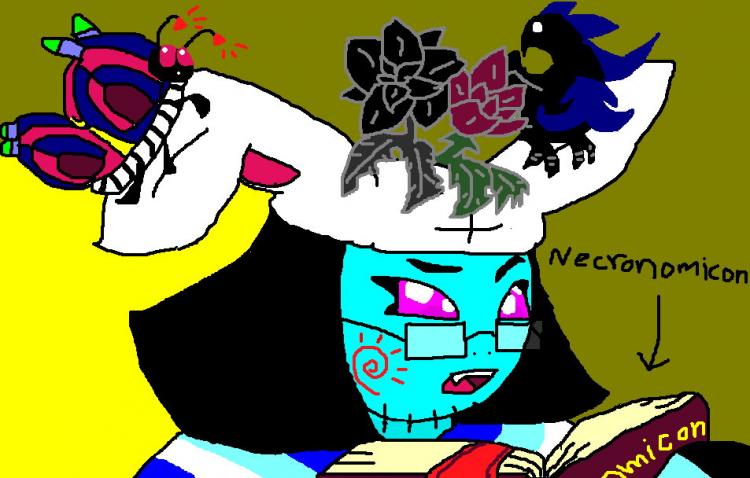 sakura bit me. this is me now! i'm trying to read necronomicon (book of the dead).