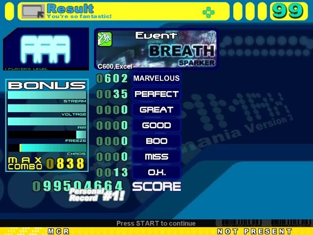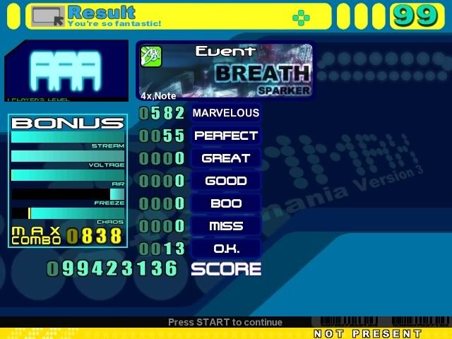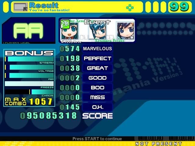 Wow, I'm not doing good on this song. Black flagged it second try. Hopefully I'll lower my perf count which is high, even for me and my bad timing. Pics later.