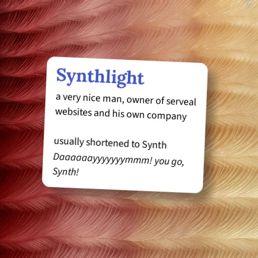 ps. I thought Synthlight was synthetic light. Just goes to show how our language is so bad ass.Status: Innactive Onehander