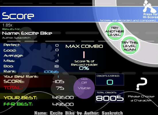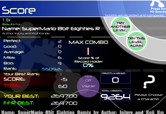 Recall that every perfect adds 550 points, every good adds 275 points, every average adds 55 points, every miss deducts 310 points, and every boo deducts 20 points from your grand total. Because this is a combo-based scoring game (something we all, including myself, disapprove of), the max combo is multiplied by 1000 points and that product is added to your grandtotal.
