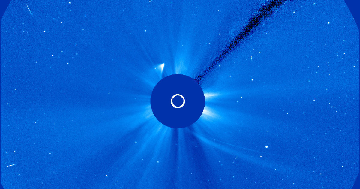 -NASA's STEREO-A spacecraft is monitoring Comet ISON as it approaches the sun for a close encounter on Nov. 28th. The latest movie from the spacecraft's Heliospheric Imager captures not only Comet ISON but also Earth, Mercury, and Comet Encke. In the movie, which spans a two day period from Nov. 19 to Nov. 22, the sun is to the right, off-screen. "The dark 'clouds' coming from that direction are density enhancements in the solar wind, and these are what are causing the ripples you see in the comet tails," explains Karl Battams of NASA's Comet ISON Observing Campaign.