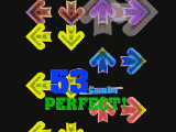 A 4th note is represented by a red arrow. These are the most common in the game since they represent whole beats. (They're the numbers in 1 & 2 & 3 & 4 &)